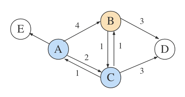 路径状态保存从源点到达每个节点在当前阶段的最短路径,在一开始的时候,因为 A 点已经可以到达 B 和 C: