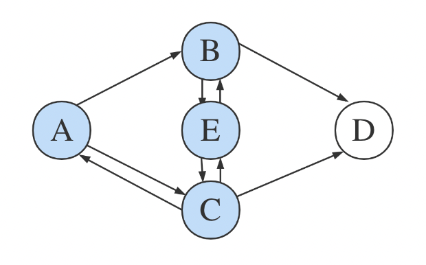 假如最短路径是 [A, E, C, D],E 点是不满足上面被放进路径的条件的,E 点无法直接到达 D 点,但是又必须被包含在路径里。去掉 可以直接到达 D 点 的限制?那上上图的 E 点也会被放到路径里。