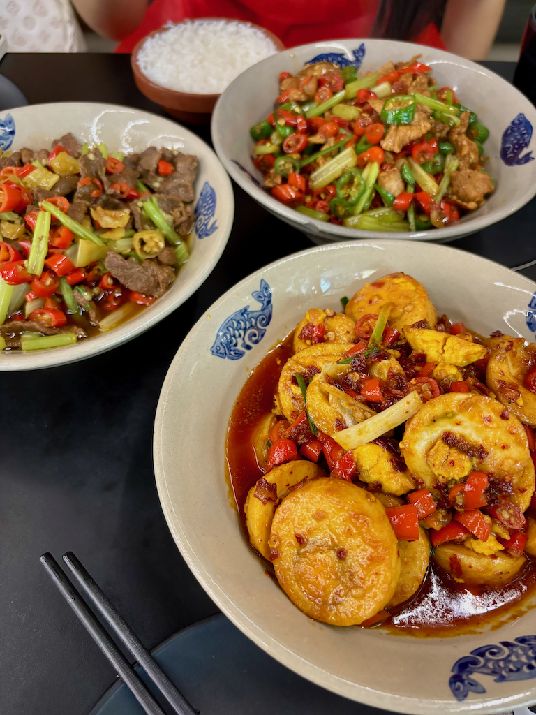 游戏结束后吃了一顿简单的饭,湘菜,在三里屯 Soho 下沉广场的潇湘阁,两个人 180 块,算是比较便宜了。
