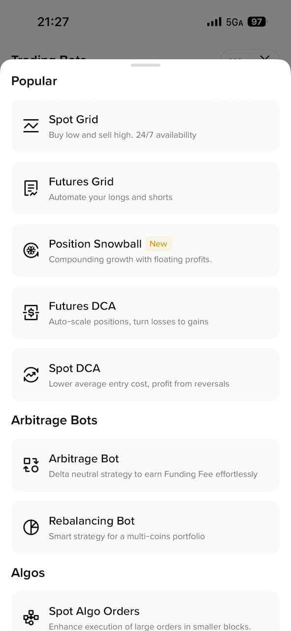 资金费率套利是一种没有风险、保本的套利方式。我一开始尝试自己写脚本来运行策略,后来发现 Binance 直接提供了 bot 来进行这种操作: